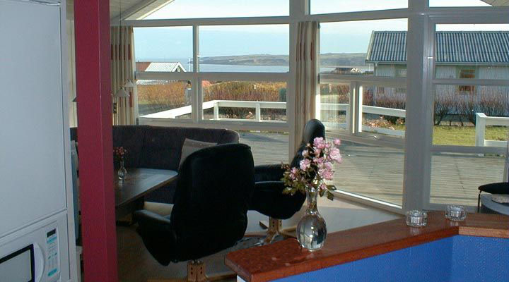 Panoramaudsigt over Limfjorden fra stue og terrasse